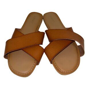 Old Navy Criss-Cross Faux-Leather Sandals Cognac Brown Size 7 1/2