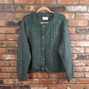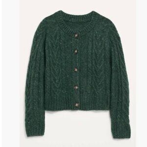 Old Navy Cropped Cableknit Cardigan Sweater in Green Christmas Preppy Women's 2X