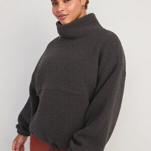 Old Navy Cropped Sherpa Teddy Mock Turtleneck Pullover Gray Sweater Size Small
