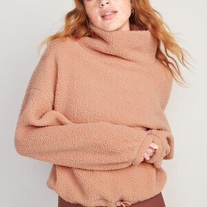 Old Navy Cropped Sherpa Teddy Mock Turtleneck Pullover Sweater Size Medium