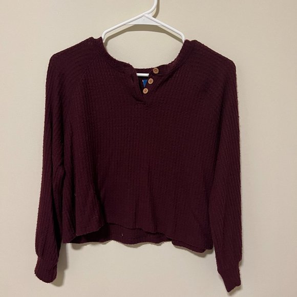 Old Navy Cropped Sweater. Size girls' large. Maroon in color. Henley styled. Incredibly soft material. Never worn (accidentally bought a girls' large instead of a woman's large). Comparable to a woman's XS/S.