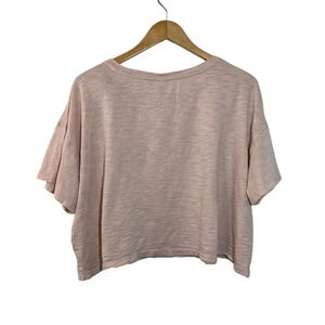 This Old Navy cropped T-shirt in size XL is perfect for casual occasions. The solid pink color and nature-themed graphic text make it a great addition to any wardrobe. The relaxed fit and casual sleeve type provide comfort and ease of movement, while the round neck and pullover closure add to its simplicity. Made of a cotton-modal blend with easy care and machine washable properties, this T-shirt is perfect for summer and spring. The knit fabric type adds to the durability and the collarless design provides a laid-back look. Whether you're running errands or meeting up with friends, this T-shirt is a great choice.