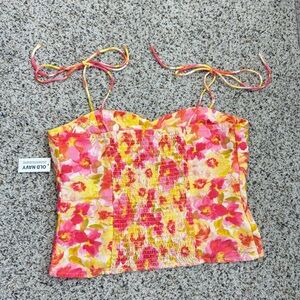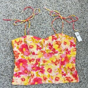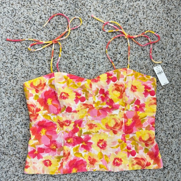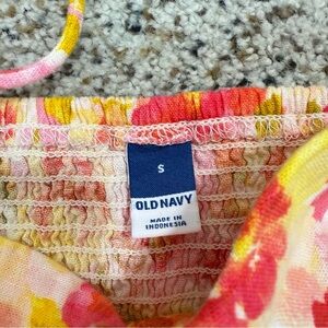 Old Navy Cropped Top Womens Small Floral Linen Pink Yellow Shirt Y2K Sleeveless