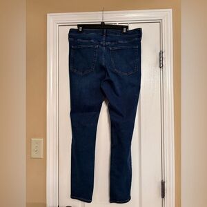 Chic dark blue skinny jeans with stylish distressing. Perfect for any casual outing. Comfortable fit.