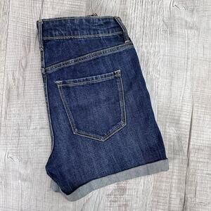 Old Navy Dark Wash High Rise Secret Slim Pocket Distressed Jean Short WMN 2 Blue