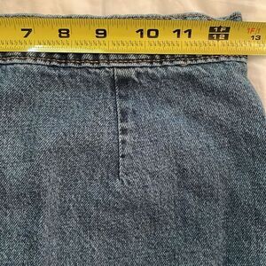 Medium wash, 100% cotton, denim, front snap, short, blue jean skirt by Old Navy in a girl's size Large (10-12). Front pockets. Tab pulls at waist for a better fit. Machine washable. Approximate measurements shown in photos. In great pre-owned condition and may have sign of wear from normal use.