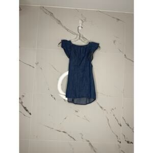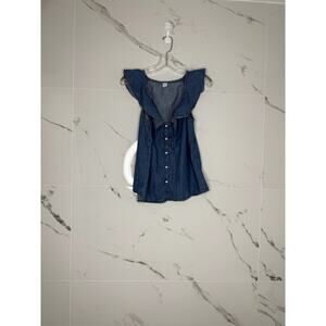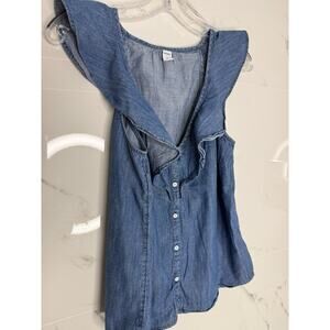 Old Navy Denim Button Up Shirt Blouse Top Blue Sleeveless Peasant Ruffle Cowgirl