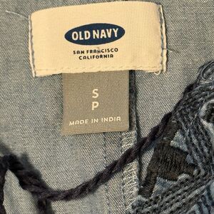 Old Navy Denim Chambray Dress Midi Embroidered Boho Cottage Core S/P