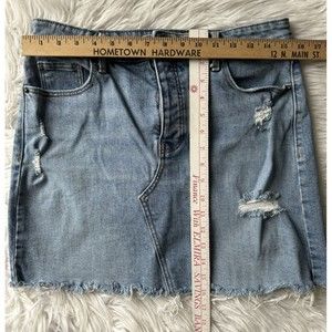 Old Navy Denim Distressed Mini Skirt Button Fly Raw Hem Size 10
