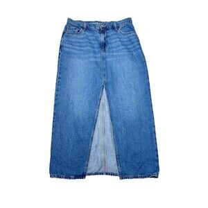 Old Navy Denim Midi Maxi Skirt Women's Size 6 Front Slit With Pockets