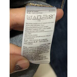 This Old Navy denim button up jacket is a timeless classic for women. The short jacket features a button-up design and is made with lightweight cotton fabric. The dark indigo color gives it a Western-inspired vibe, making it perfect for any casual occasion. The jacket is a size medium and has a regular fit. It also has accents like buttons and a collar that add to its overall look. The jacket is perfect for those who love the 90s style and want to add a touch of classic to their wardrobe.