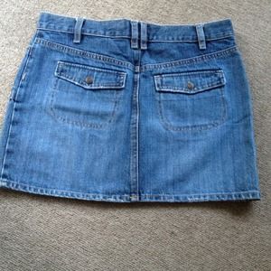 Denim skirt will look great with wedges and a tank or thrown over a bathing suit with your favorite flip flops. Size 4 but fits more like a 2. Like new condition (yet so comfortable)...