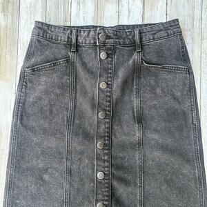 Old Navy Denim Skirt Sz 6 Black Midi Button Down Faded Y2K Casual Skater Punk