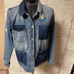 Old Navy Denim Jean Jacket w/ Patches Cat and AT trail Medium