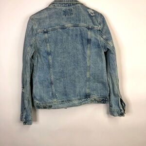 Old Navy Destructed Distressed worn Denim Jacket size large Tall