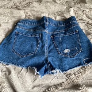 Excellent preowned condition. Distressed, medium wash, mid-rise, 3 inch boyfriend shorts.