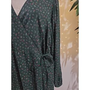 Old Navy Ditsy Floral Puff Sleeve Wrap Mini Dress Womens Plus Size XXL Green Cottagecore