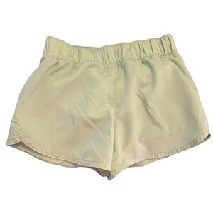 Fair condition, has a couple of small brown marks on back and yellow marks on waistband as shown. Old Navy. Dolphin-Hem Run Shorts. Light mint green color, name is ambrosia. Size medium 8. 100% polyester. Waist 10” Inseam 3” Front Rise 7”. All measurements are approximate and taken laying flat. Smoke free home. No trades, offers welcome.