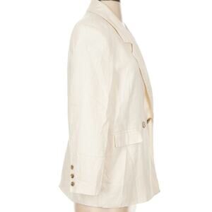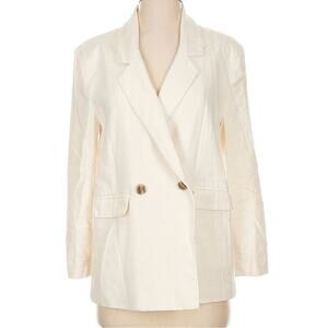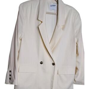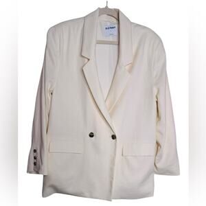 This cream blazer from Old Navy features a classic lapel collar and a relaxed, slightly oversized fit. Its clean lines and minimal detailing offer a timeless elegance suitable for professional settings.