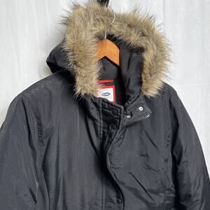 Old Navy Down Filled Parka Coat Women's XL Black Fur Trim Very Warm Winter Wear