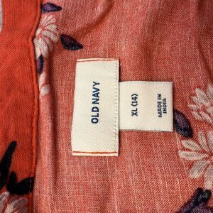 Old Navy Dress Girls Teens XL 14 Linen Blend Orange Pink Floral Cottage Core
