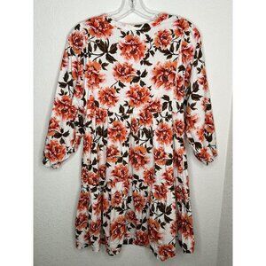 Old Navy Dress Girls XL 14-16 Cream Orange Floral Tiered 1/4 Button Boho Spring