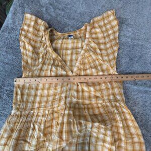 Old Navy Dress Large Plaid Retro Prairie Flutter Sleeve Pockets Western 18692