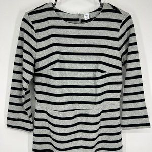 Old Navy Dress Ponte Knit Sheath Gray Black Stripe 3/4 Sleeve NWT