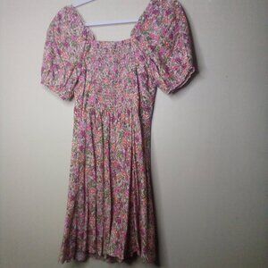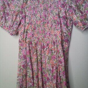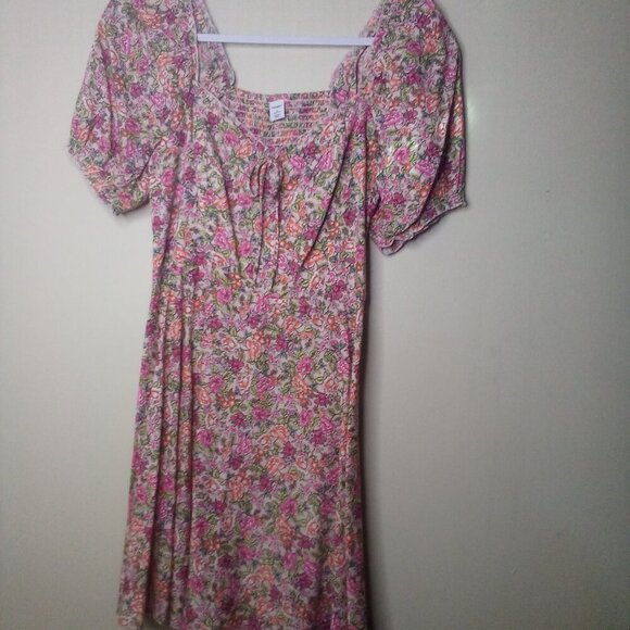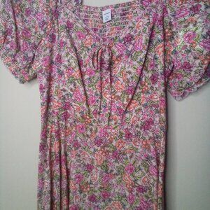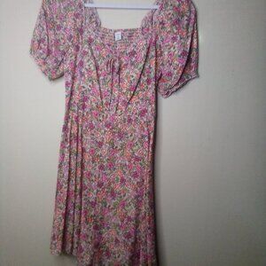 Old Navy Dress S Petite Peasant Short Sleeve Floral Colorful