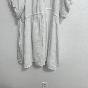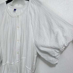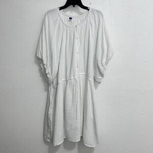 Old Navy Dress Slub Cotton Gauze White Puff Sleeve Drawstring Waist Size XXL