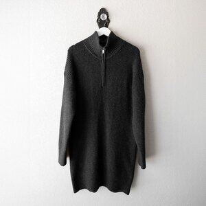 Old Navy Dress Sz L Dark Gray Knit 1/4 Zip Ribbed Long Sleeve Shift Recycled