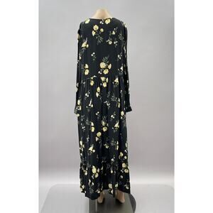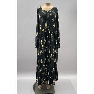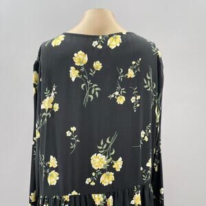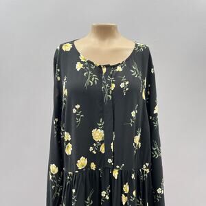 Old Navy Dress Women 1X Plus Black Floral Midi Button Front Long Sleeve NEW
