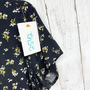 Old Navy Dress Women Size Medium Black Dainty Floral Short Sleeve T-Shirt Mini