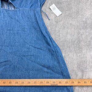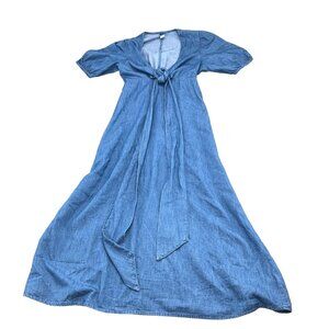 Old Navy Dress Women Small Blue Bow Midi Peasant Boho Chambray Cotton NWT