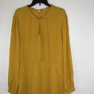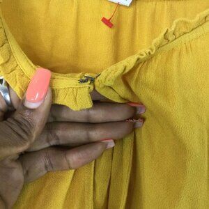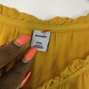 Old Navy Dress Women XXL Yellow Long Sleeve Ruffle Collar Pullover Lined