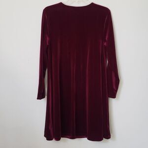 This cranberry velvet dress from Old Navy features a classic A-line silhouette with long sleeves and a crew neck. Its simple design makes it perfect for work or everyday wear, while the rich color adds a touch of elegance.