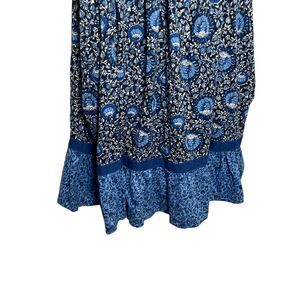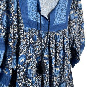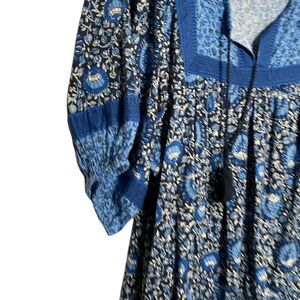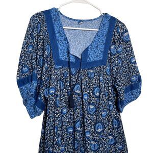 Old Navy Dress Women's Large Blue V-Neck Tiered Puff Sleeve Boho Tie Casual