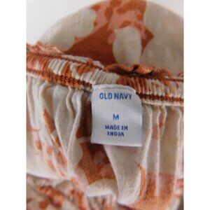 Old Navy Dress Womens Medium Orange Floral Maxi Boho Smocked Waist Cap Sleeve