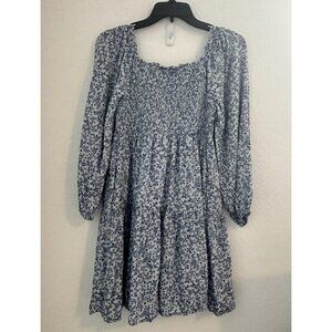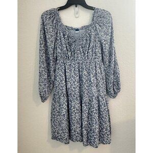 Old Navy Dress Womens Small Blue Ditsy Floral Long Sleeve Tie Neck Smocked Boho MIlkmaid