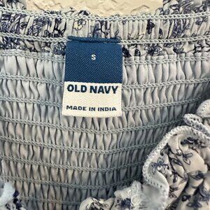 Old Navy Dress Womens S Blue Ditsy Floral L/S Tie Neck Smocked Boho Romantic
