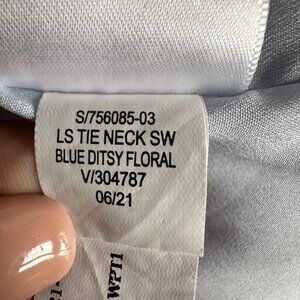 Style Name: LS Tie Neck SW, Blue Ditsy Floral