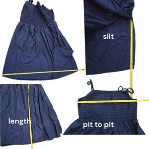 Strapless design, Smocked bodice, Navy color, Cotton blend Excellent Condition