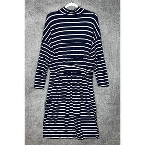 Old Navy Dress Womens Size XL Blue White Striped Long Sleeve Mock Neck Ribbed Maxi