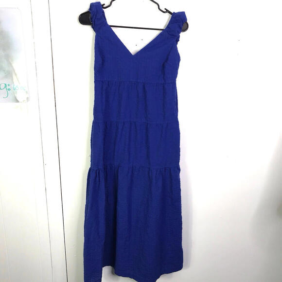Old Navy Dress Womens XS Sleeveless Tiered Ruffle Tie Back Royal Blue Midi