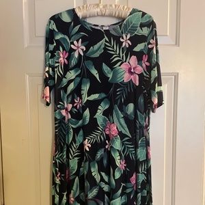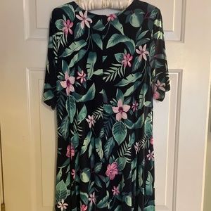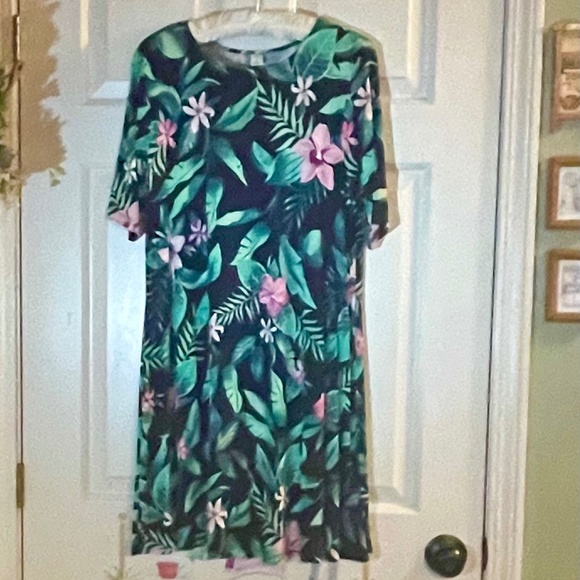 Old Navy Dress in shades of green & pink with a deep navy background