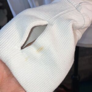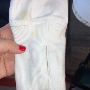 Jacket is in great condition however there is some minor staining/discoloration around thumb holes (see pics)