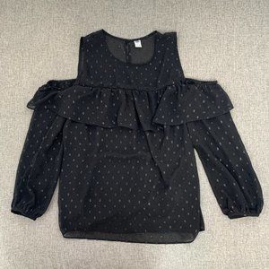 Old Navy Elegant Black Blouse Cold Shoulder Ruffled Round Neck Medium Lined