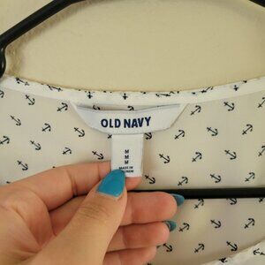 Old Navy "Elite Anchor" White & Navy Nautical Themed 100% Polyester Chiffon Blouse