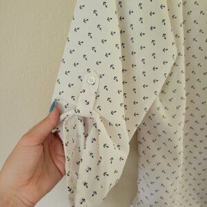 Old Navy Elite Anchor Print White Roll Tab Chiffon Blouse Size Medium - EUC