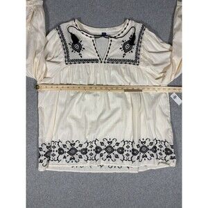 Old Navy Embroidered Boho Peasant Tunic Cream and Black Relaxed Flowy Size XXL